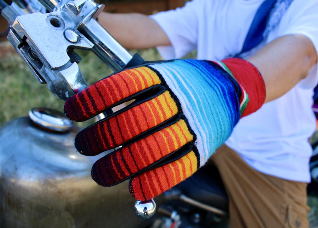 Our La Fusca sarape gloves are handmade in Mexico with genuine leather, built for both riding and making a statement.